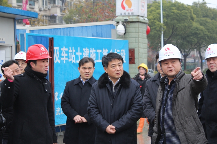在新春的第一個(gè)工作日,區(qū)委書記曹裕江心系漢陽區(qū)第一條地鐵線路——武漢市軌道交通四號線二期工地現(xiàn)場施工情況,冒著雨雪交加、寒風(fēng)凜冽,率隊(duì)蒞臨四號線二期八標(biāo)玉龍路地鐵施工現(xiàn)場視察慰問,區(qū)建設(shè)局長嚴(yán)悌文、集體公司胡紅勝董事長陪同視察。視察中,曹裕江書記詳細(xì)詢問了工程建設(shè)情況,充分肯定了現(xiàn)場管理人員在惡劣天氣環(huán)境下仍堅(jiān)守崗位,并表示希望現(xiàn)場施工人員在新的一年里繼續(xù)努力,為武漢軌道交通的建設(shè)貢獻(xiàn)自己的一份力量。