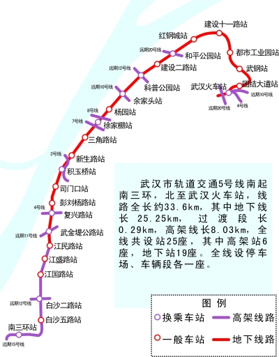武漢市軌道交通5號線工程第七標段中標產值5.7億,工期881天。該工程橫貫武昌東西,串接了白沙洲、武昌老城區(qū)、武昌濱江商務區(qū)、徐東片區(qū)、青山濱江商務區(qū)、紅鋼城商圈,武鋼廠前和武漢火車站,是武昌鎮(zhèn)內軌道主干線,也是聯(lián)結貫通武漢城市圈的又一重要線路。