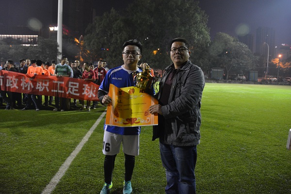 11月4日晚上7:00,2016年第九屆“漢陽市政杯”職工足球比賽決賽在新華路體育館外場舉行,由漢陽市政集團隊與新區(qū)代表隊爭奪冠亞軍。在觀眾的加油聲中,漢陽市政集團隊不負眾望,最終以3:1的比分獲得了本次比賽的冠軍。鐘鑫市政公司在比賽中表現優(yōu)異,榮獲優(yōu)勝獎。集團公司與各分公司領導均出席了閉幕式。閉幕式上我公司涂軼銘書記為冠軍隊伍進行了頒獎,最后由我公司方紫微總經理致閉幕辭。到此“漢陽市政杯”2016年職工足球比賽閉幕。