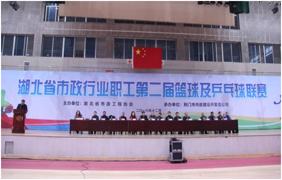 12月12日上午9點(diǎn),由湖北省市政工程協(xié)會主辦、荊門市市政建設(shè)開發(fā)總公司承辦的全省市政行業(yè)職工第二屆籃球聯(lián)賽在荊門市體育文化中心開幕。省協(xié)會秘書長趙亞玲主持開幕式。比賽組委會有關(guān)人員、運(yùn)動員、裁判員及觀眾共200余人參加開幕式。漢陽市政副總經(jīng)理、鐘鑫市政總經(jīng)理方紫微親自帶隊參加了本次活動。