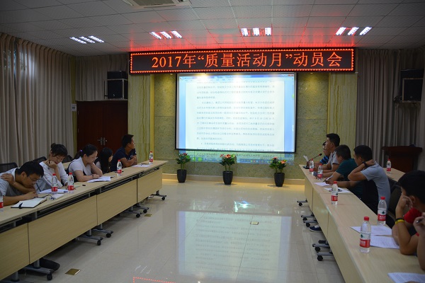 根據(jù)集團公司“質量活動月”方案的精神和內容,為進一步加強鐘鑫公司質量品質,切實組織開展好2017年“質量月”活動,努力在全公司營造“重視質量、追求質量、崇尚質量、關心質量”的氛圍,廣泛開展質量安全宣傳活動,優(yōu)化質量發(fā)展環(huán)境。鐘鑫公司2017年度“質量活動月”活動動員會于2017年9月8日下午17時在公司一號會議室順利召開。鐘鑫公司總經(jīng)理涂軼銘,副總經(jīng)理徐浩,各項目經(jīng)理等共30余人參加本次動員會。會議由公司質安部部長楊潔主持。