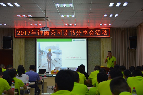 書籍是人類進步的階梯,讀一本好書,就像和許多高尚的人談話。為了引導公司職工牢固樹立社會主義核心價值觀,激發(fā)領導員工愛讀書、讀好書的學習熱情,不斷提升自主學習能力,著力把學習型企業(yè)建設向縱深推進,2017年9月22日下午15:00,鐘鑫公司2017年讀書分享會活動在鐘鑫公司一號會議室隆重舉行,鐘鑫公司黨支部書記、董事長方紫微,鐘鑫公司黨支部副書記、總經(jīng)理涂軼銘,鐘鑫公司副總經(jīng)理徐浩,鐘鑫公司總工程師汪定國,漢陽市政各分子公司辦公室主任、同事以及鐘鑫公司80余位職工代表共同參加本次活動。