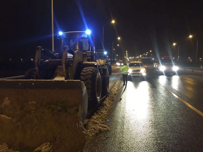 時(shí)間來(lái)到27日晚上23時(shí),在三環(huán)線白沙洲大橋——國(guó)博大道路段,漢陽(yáng)市政鐘鑫公司的搶險(xiǎn)隊(duì)伍在漢陽(yáng)市政集團(tuán)副總經(jīng)理、鐘鑫公司董事長(zhǎng)方紫微的帶領(lǐng)和指揮下,克服白天一整天抗雪搶險(xiǎn)的疲憊感,緊急調(diào)度機(jī)械設(shè)備和搶險(xiǎn)人員,連夜前往搶險(xiǎn)路段奮戰(zhàn)3小時(shí),在寒冷冬夜順利完成了搶險(xiǎn)任務(wù)。