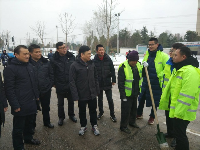 時(shí)間來(lái)到28日上午8時(shí),在三環(huán)線百威路—長(zhǎng)豐橋路段,鐘鑫公司迅速調(diào)度六大項(xiàng)目部150人和鏟車(chē)、農(nóng)用車(chē)數(shù)臺(tái),集體前往三環(huán)線高架進(jìn)行除雪破冰。8點(diǎn)鐘的三環(huán)線高架,格外清冷,最低溫度甚至達(dá)到了零下6度!可是當(dāng)你置身于搶險(xiǎn)現(xiàn)場(chǎng)時(shí),卻完全感覺(jué)不到寒意——只因?yàn)榇蠹胰硇牡耐度氲綋岆U(xiǎn)工作中,一把把鐵鍬揮舞得那么有力,一條條產(chǎn)雪破冰后的路面是那么干凈整潔,現(xiàn)場(chǎng)氣氛是那么的熱烈。期間更是迎來(lái)了漢陽(yáng)區(qū)委書(shū)記馬澤江、漢陽(yáng)市政集團(tuán)公司董事長(zhǎng)嚴(yán)悌文等領(lǐng)導(dǎo)來(lái)到搶險(xiǎn)現(xiàn)場(chǎng)指揮工作,為正在搶險(xiǎn)的“鐵軍”們鼓勁加油,大家干勁更足了,精神更振奮,最終在下午13:30將三環(huán)線百威路—長(zhǎng)豐橋路段路面積雪清掃完畢。