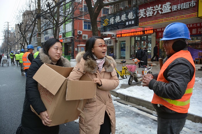 指針來(lái)到下午14時(shí),鐘鑫市政“鐵軍”在公司領(lǐng)導(dǎo)的帶領(lǐng)下,搶險(xiǎn)隊(duì)伍馬不停蹄地來(lái)到了國(guó)博大道??碧酵戡F(xiàn)場(chǎng)之后立即做出工作部署,將全體人員和機(jī)械按照路段劃分為三個(gè)路段進(jìn)行除雪破冰。下午的國(guó)博大道,寒風(fēng)凜冽,氣溫格外寒冷。好在鐘鑫公司的女同志們不顧嚴(yán)寒,精心準(zhǔn)備了充足的姜湯和熱騰騰的包子,為饑寒交迫的搶險(xiǎn)隊(duì)伍送來(lái)了熱飲和食物,姜湯驅(qū)除寒氣,食物更暖人心,隊(duì)伍在下午18時(shí)順利完成了清掃任務(wù)。期間,方紫微帶領(lǐng)部分人員火速馳援馬滄湖路進(jìn)行路面清掃,擼起袖子和大家伙兒一起干!清掃完畢的馬滄湖路煥然一新。