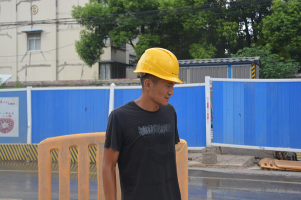 初次見面,徐軍濤害羞且寡言,目光所及都是施工作業(yè),他的專注會讓人覺得走近拍攝是對他的一種打擾。清晨亮起的微光仿佛是一天高強(qiáng)度工作開始的訊號,從訊號發(fā)出到進(jìn)入奮戰(zhàn)狀態(tài)之間無縫銜接。夏季武漢涼爽的早晨到9點(diǎn)就結(jié)束了。烈日炙烤下的施工現(xiàn)場讓人不禁感嘆時間過得真慢啊,真想一眨眼的功夫這暑氣便能褪去。晴空萬里,天上沒有一絲云彩,太陽把地面烤得滾燙。一陣熱風(fēng)刮來,從地上卷起一股熱浪使人感到陣陣窒息。雜草抵擋不住太陽的曝曬,葉子都卷成了細(xì)條,但徐軍濤卻像沒有感覺到這酷暑似的繼續(xù)工作。