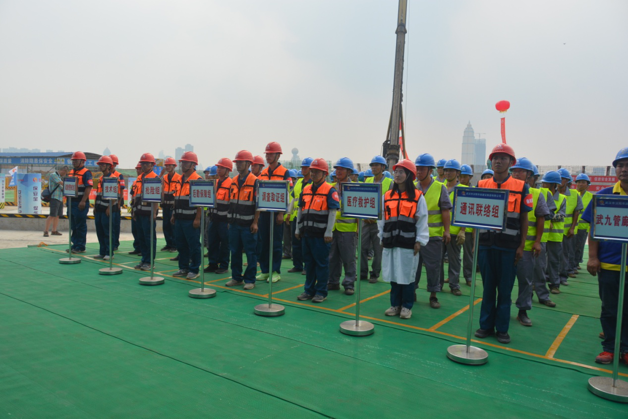 為應(yīng)對防汛突發(fā)事件,減少事故災(zāi)害損失,提高防汛搶險應(yīng)急處置能力,快速、高效、有序地實(shí)施搶險救援工作,為實(shí)戰(zhàn)搶險奠定基礎(chǔ),6月26日15時,武漢市漢陽市政建設(shè)集團(tuán)有限公司月亮灣城市陽臺工程(一期)項(xiàng)目在項(xiàng)目現(xiàn)場開展了2019年防汛搶險應(yīng)急演練活動。武漢市水務(wù)局、武昌區(qū)水務(wù)局、青山區(qū)水務(wù)局、武漢市城投集團(tuán)、鐵投公司、監(jiān)理公司以及漢陽市政集團(tuán)領(lǐng)導(dǎo)出席了本次活動。
