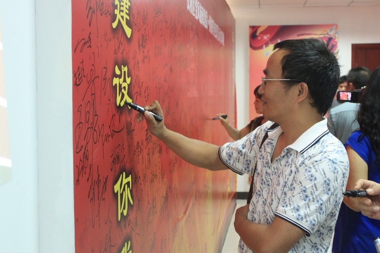 2013年8月21日,公司支部書(shū)記王繁帶隊(duì)前往漢陽(yáng)區(qū)文體局反腐倡廉警示教育基地參加漢陽(yáng)市政黨員反腐倡廉警示教育活動(dòng)。圖為支部書(shū)記王繁在留言板上簽名留念。