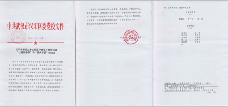第三十三期中青年干部培訓(xùn)班學(xué)員在區(qū)委黨校學(xué)習(xí)培訓(xùn)期間,按照區(qū)委的要求,把理論武裝,黨性修養(yǎng),能力提升貫穿于學(xué)習(xí)的全過程,認(rèn)真學(xué)習(xí),積極思考,在政治品質(zhì)、領(lǐng)導(dǎo)素養(yǎng)、解決實(shí)際問題的能力等方面都有了新的提高,涌現(xiàn)出一批嚴(yán)格要求自己,勤奮學(xué)習(xí)、積極進(jìn)取、成績優(yōu)秀的學(xué)員,特別是他們?cè)诋?dāng)前開展的“三嚴(yán)三實(shí)”系列教育活動(dòng)中表現(xiàn)突出,為了弘揚(yáng)黨校的優(yōu)良學(xué)風(fēng),營造崇尚先進(jìn)、學(xué)習(xí)先進(jìn)、爭當(dāng)先進(jìn)的良好氛圍,經(jīng)學(xué)員民主推薦,班委會(huì)研究,校委會(huì)同意,決定對(duì)董國棟等3名優(yōu)秀班干部和吳飛舟等11名優(yōu)秀學(xué)員予以表彰(名單附后)。