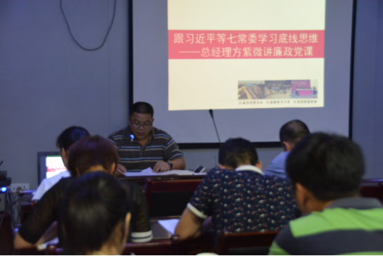 3月29日下午,方紫微總經(jīng)理為支部黨員同志們講了一堂名為《跟習(xí)近平等七常委學(xué)習(xí)底線思維》的廉政黨課。支部書記涂軼銘主持。