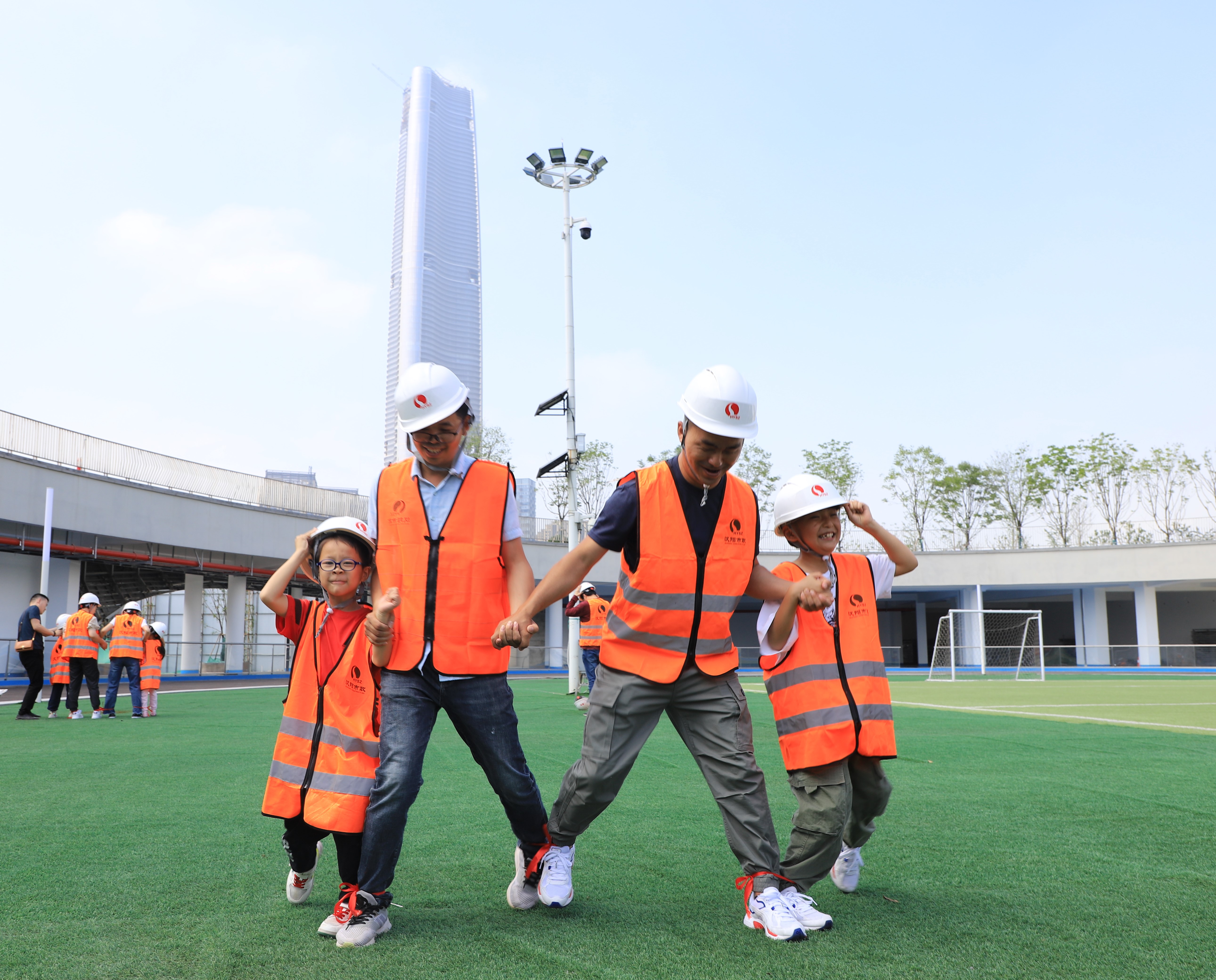 參觀完項(xiàng)目現(xiàn)場(chǎng)后,正式進(jìn)入親子互動(dòng)游戲環(huán)節(jié),本環(huán)節(jié)包含“四人五足”、“夾球前進(jìn)”和“默契大考驗(yàn)”三個(gè)游戲,讓家長(zhǎng)和孩子們?cè)诨?dòng)中增進(jìn)親子關(guān)系,在游戲中度過最美時(shí)光。在“四人五足”游戲中,20組家庭兩兩成隊(duì),主持人一聲令下,大家迅速?gòu)钠瘘c(diǎn)出發(fā),在“一二、一二”統(tǒng)一、嘹亮的口號(hào)聲中,所有家庭齊步前進(jìn),走到終點(diǎn)后,孩子們?yōu)榧议L(zhǎng)穿戴好安全背心和安全帽,各隊(duì)又以最短的時(shí)間回到起點(diǎn)。在家長(zhǎng)和孩子們的默契協(xié)作下,所有家庭均圓滿完成游戲,共享親子交流和競(jìng)爭(zhēng)的樂趣。