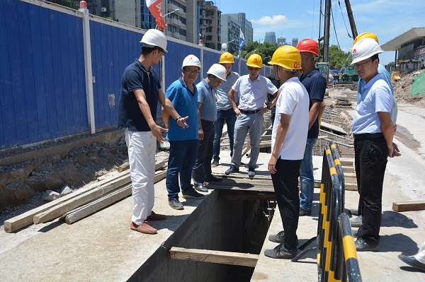 涂軼銘一行則來到了馬滄湖道路排水和清淤工程、軌道交通7號(hào)線第十七標(biāo)段土建工程、和諧大道道路排水改造項(xiàng)目的現(xiàn)場(chǎng)。涂軼銘對(duì)高溫下辛勤工作的一線人員表示了親切慰問,了解工作情況及進(jìn)度,對(duì)他們?yōu)榕潘こ痰姆瞰I(xiàn)表示衷心的感謝,并一再叮囑工作人員注意身體健康,一定要做好防暑降溫工作。