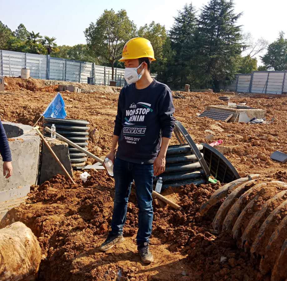 在火神山現(xiàn)場(chǎng),他主要負(fù)責(zé)土方施工、強(qiáng)弱電施工以及后勤保障管理工作?,F(xiàn)場(chǎng)施工時(shí)間緊,任務(wù)量大,交叉作業(yè)多,協(xié)調(diào)量大,當(dāng)被問(wèn)到:“在這種情況下,是如何完成現(xiàn)場(chǎng)土方施工4萬(wàn)方,強(qiáng)弱電管道施工2900米,防滲膜施工2.5萬(wàn)平米時(shí)”,略帶靦腆的李衛(wèi)民說(shuō)到:“這都是大家齊心協(xié)力的結(jié)果,一個(gè)人的力量有限,但我們擰成一捆繩,就沒(méi)有什么困難能難倒我們”。雖然現(xiàn)場(chǎng)困難多,但最讓他揪心的莫過(guò)于隊(duì)員們的安全問(wèn)題,他說(shuō):“這次籌建是上級(jí)交給我們的“考試”,只有隊(duì)員們都安全,我們才能順利“交卷””,項(xiàng)目現(xiàn)場(chǎng),他時(shí)刻做好工人們的心理疏導(dǎo),引導(dǎo)他們克服困難,時(shí)刻提醒他們消毒、佩戴口罩,保障他們的后勤需要,“只有這樣,我們才能按時(shí)保質(zhì)保量完成任務(wù)?!彪m然項(xiàng)目現(xiàn)場(chǎng)施工實(shí)行24小時(shí)兩班倒,連續(xù)作業(yè),但為保障施工順利進(jìn)行,他連續(xù)三天沒(méi)有休息過(guò),實(shí)在困了,就隨地趴一下,醒了,又繼續(xù)奮斗。他說(shuō):“疫情不等人,我們只有爭(zhēng)分奪秒,和病毒賽跑,和時(shí)間賽跑,跑到他們前面,我們才能贏。”