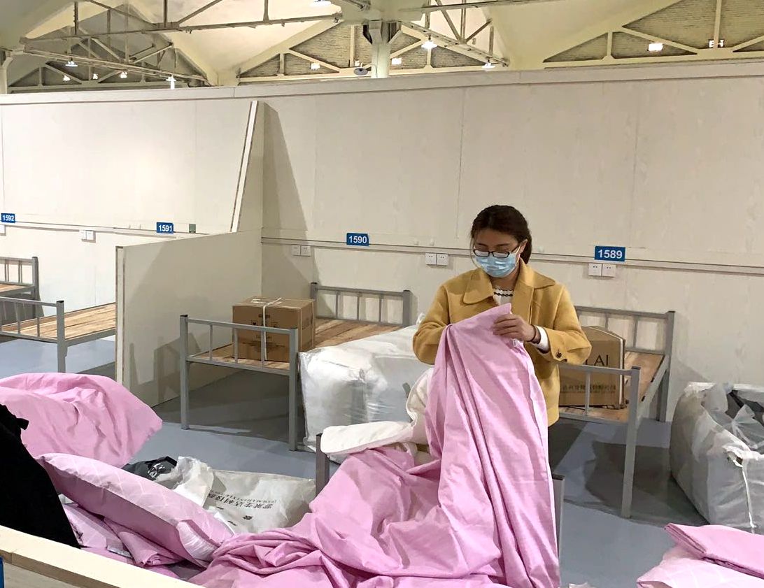 作為武漢內(nèi)環(huán)最大的方艙醫(yī)院,漢陽(yáng)市政負(fù)責(zé)全部2294張床位的物資鋪設(shè),而這也成為搶建過(guò)程中最大的難題。面對(duì)人員緊缺、工作量巨大等困難,四公司所有在漢職工得知消息后,為確保順利完成搶建任務(wù),紛紛積極響應(yīng),主動(dòng)請(qǐng)戰(zhàn),女職工亦奮勇當(dāng)先,貢獻(xiàn)自身的一份力量。因武漢交通嚴(yán)格管制,出行成為一大阻礙,但交通管制阻擋不了腳步,在漢職工有車輛通行證的一個(gè)一個(gè)點(diǎn)位去接,沒(méi)有通行證的甚至從隔離點(diǎn)附近騎著自行車、步行前往。物資搬運(yùn)、清點(diǎn)、分揀、鋪設(shè),公司在漢員工上下齊心,心往一處想、勁往一處使,在兩天兩夜的不懈努力下,2294張床位配備的收納箱、床上三件套、洗漱用品等18件套于25日?qǐng)A滿布置完畢。