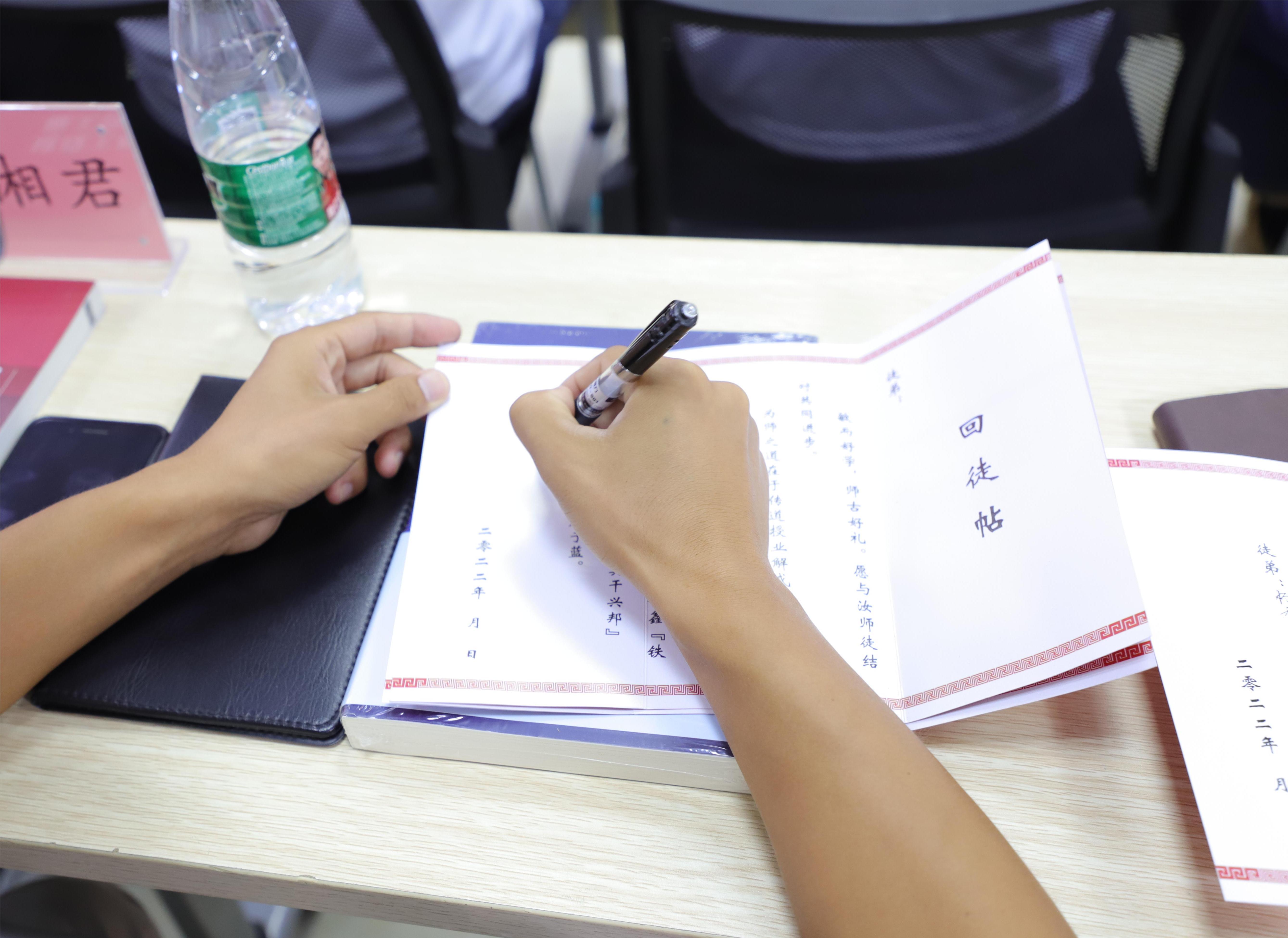 拜師既是一種儀式,也是一種責(zé)任與擔(dān)當(dāng),更是一種生生不息的傳承,除了明確師徒名分,鐘鑫育人精神也在薪火相傳。在正式拜師環(huán)節(jié),儀式感滿滿,全體師徒鄭重簽下拜師帖和回徒帖,立下尊重老師、精心授業(yè)的鄭重宣言。
